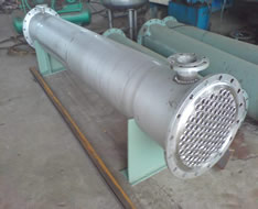 不銹鋼冷凝器既可是一種單獨的設備,如加熱器、冷卻器和凝汽器等;也可是某一工藝設備的組成部分,如氨合成塔內的熱交換器。由于制造工藝和科學水平的限制,早期的換熱器(冷凝器)只能采用簡單的結構,而且傳熱面積小、體積大和笨重,如蛇管式換熱器等。隨著制造工藝的發展,逐步形成一種管殼式換熱器,它不僅單位體積具有較大的傳熱面積,而且傳熱效果也較好,長期以來在工業生產中成為一種典型的換熱器。